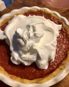 Wymieszaj truskawki z resztą składników na spód i przełóż do formy na ciasto. Następnie wymieszaj wszystkie składniki do nadzienia w osobnej misce i przełóż do formy na ciasto, równomiernie rozprowadzając na masie owocowej.